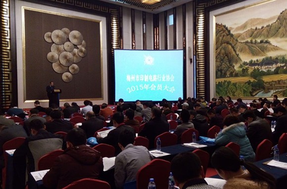 12月19日下午,梅州市印制電路行業協會(MPCA)在梅州昌盛豪生大酒店召開了2015年會員大會朁換屆大會,CPCA 名譽秘書長王龍基、秘書長張瑾,副書長龔永林,GPCA會長辛國勝、SPCA副秘書長何堅明,和MPCA的103家會員企業的代表,共約150人出席了大會。