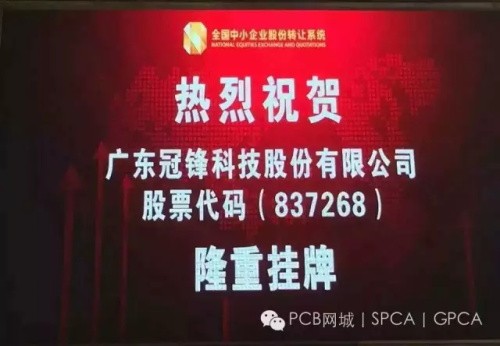 2005年,林能文董事長引進香港冠鋒國際集團有限公司,在梅州經濟開發區東升園區投資創立了冠鋒電子科技(梅州)有限公司,專業生產高精密度和高可靠性印制電路板。