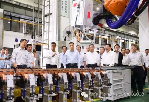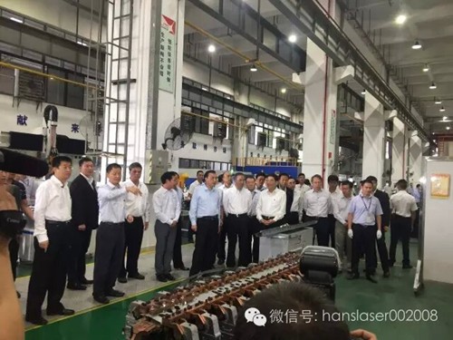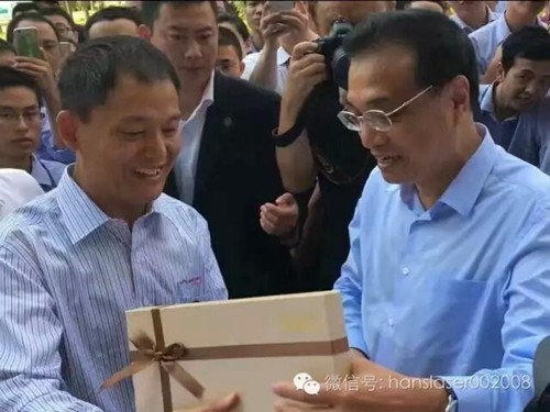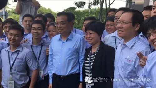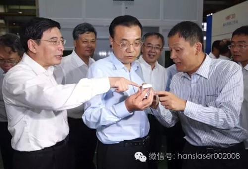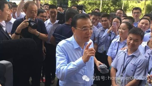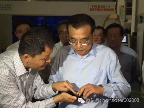 大族激光董事長高云峰向總理匯報了公司的發(fā)展情況,總理現(xiàn)場視察了自動化激光切割、焊接設備生產(chǎn)車間和3D打印復合加工中心,觀看了激光裝備在航空航天、船舶制造、軌道交通、通訊等工業(yè)領域應用的演示視頻。總理期間停步10多次,問得特別仔細,近乎看遍全部設備。