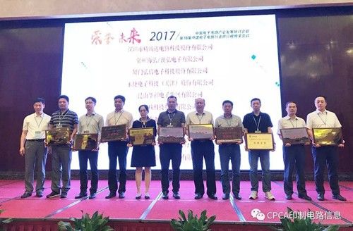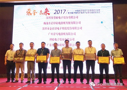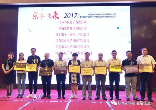接下來進行第十六屆中國電子電路行業(yè)排行榜頒獎儀式,企業(yè)代表分批上臺從頒獎嘉賓高素梅執(zhí)行秘書長、由鐳理事長、黃志東常務副理事長、王龍基名譽秘書長、張瑾秘書長、楊朝輝副理事長、蔡志浩副理事長、董曉軍副理事長、王毅副理事長、黃泰云副理事長、劉德威副理事長、陳興農(nóng)副秘書長手中接過榮譽獎牌。
