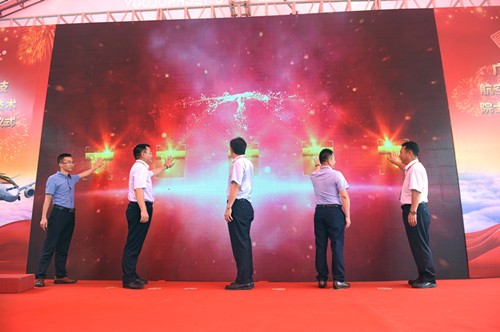 陳志杰院士、尚忠副市長、朱國城書記、盧育輝秘書長、林能文董事長共同為廣東省冠鋒科技航空航天電子信息技術院士工作站揭牌。