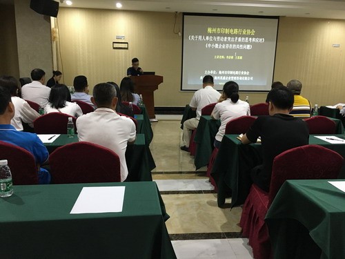 2019年4月27日下午,由梅州市印制電路行業協會、梅州英盛企業管理咨詢有限公司聯合舉辦“MPCA勞動法專題講座”,在梅州市格林豪泰酒店隆重召開,本次專題講座有45家會員單位70多人出席參加。