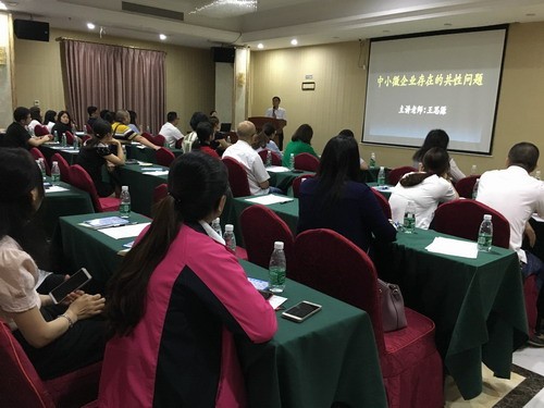 緊接著,由梅州英盛企業管理咨詢有限公司王思源老師為大家分享了中小微企業存在:1、企業組織架構實用設置問題;2、選育用留難的問題;3、實用崗位通道的設置問題;4、員工待遇問題5、實用企業管理的定位問題;6、執行力的問題;7、制定行政制度和財物制度的問題;8、成本定位問題;9、生產安全風險問題;10、培訓定位問題等等。