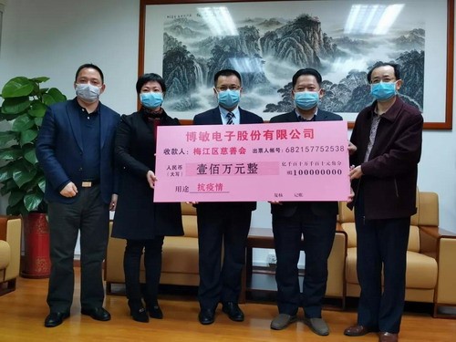 2月2日,梅州市印制電路行業(yè)協(xié)會名譽會長、博敏電子股份有限公司董事長徐緩先生,向梅州市梅江區(qū)慈善會捐款100萬元,助力抗擊新型冠狀病毒感染的肺炎疫情。