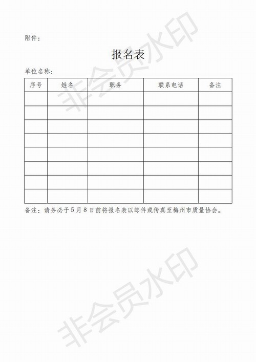 員填寫報名表,于 5 月 8 日前以郵件或傳真至梅州市質量協會。