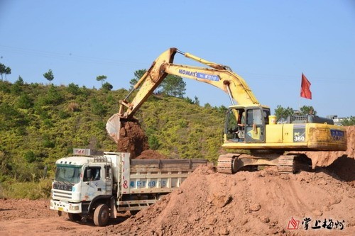 大年初五一大早,記者在梅州綜保區(qū)項(xiàng)目建設(shè)現(xiàn)場(chǎng)看到,16臺(tái)大型挖掘機(jī)正在山坡上施工作業(yè),40多輛運(yùn)輸車(chē)在來(lái)回穿梭搬運(yùn)土方。梅州綜保區(qū)建設(shè)項(xiàng)目經(jīng)理張榮華介紹,除夕和大年初一兩天的短暫休整后,大年初二一早,全體施工人員按往常的上工時(shí)間來(lái)到綜保區(qū)建設(shè)現(xiàn)場(chǎng),吹響新一輪建設(shè)號(hào)角。