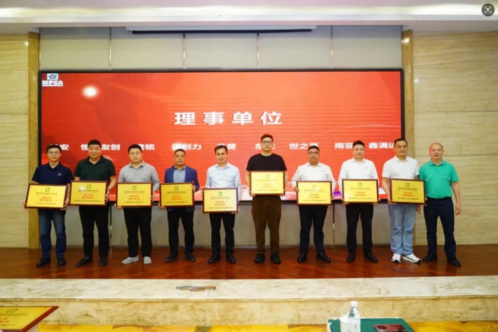 MPCA副會長兼監事長林鏡波頒發證書(祝賀邁創力科技姚志鋒先生、多普光電設備陳振才先生、競銘機械朱茂雄先生、東威科技肖治國先生、恒達友創網印呂俊友先生、承安科技周建新先生、世之高智能裝備胡文敏先生、南亞新材料包亦嘯先生、鑫滿達實業賴錦鋒先生當選理事)