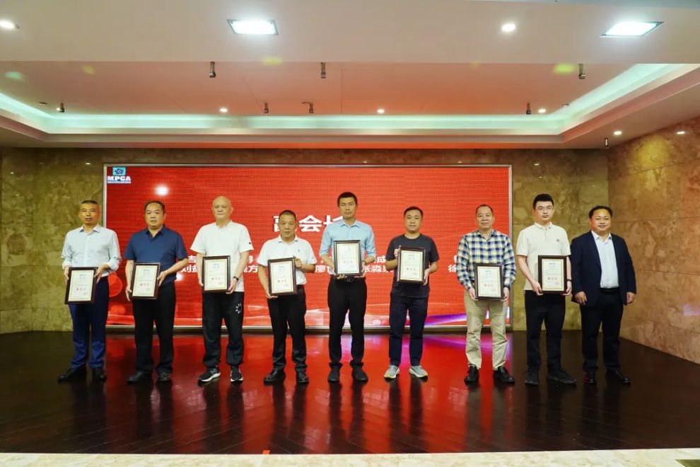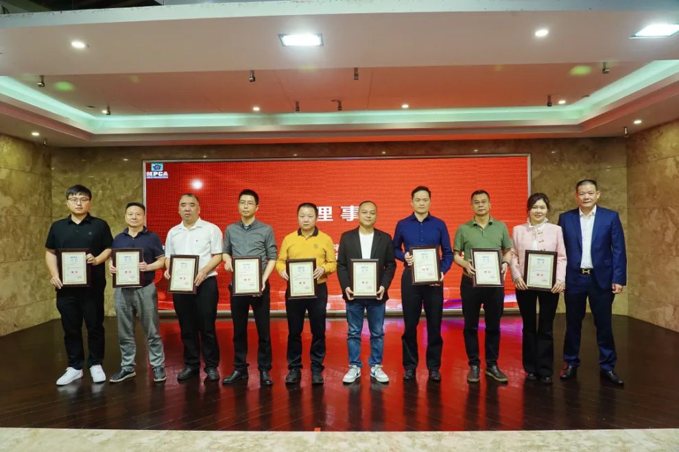 MPCA何德英會長頒發證書(祝賀利裕達電路曾裕鋒先生、中聯精密電子古云生先生、駿達電子徐名中先生、龍宇新材料劉海鋒先生、世亞電子溫奕相先生、智科電路板周旋先生、科興電子黃文偉先生、華禹污水處理洪育佳先生、永鑫精工科技辛玲玲女士當選理事)
